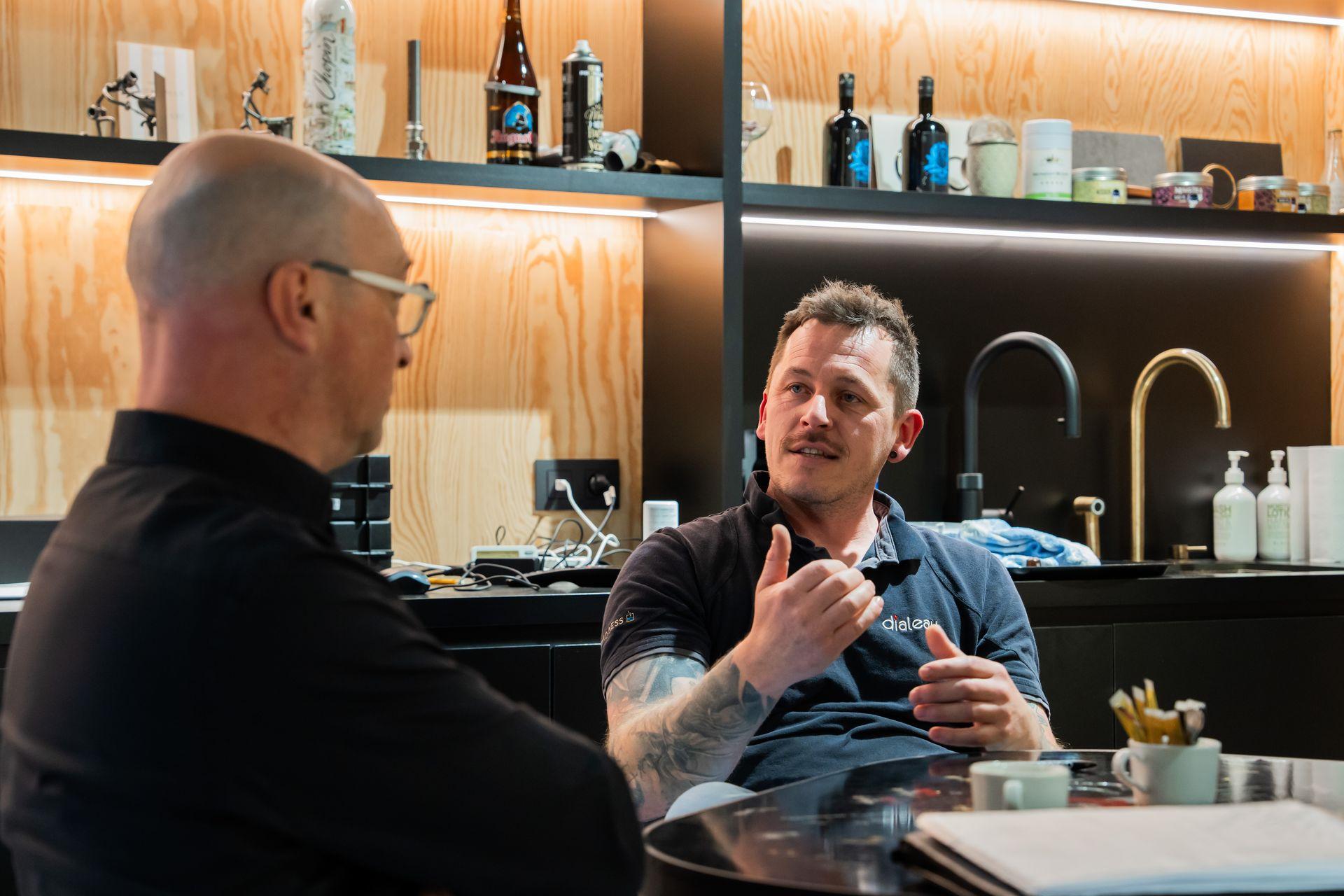 Alex: “Een 14-tal jaar geleden zijn Dieter en ik in bijberoep met Dialeau gestart. Vandaag staan we hier met een team van 16, waarvan drie bedienden en de rest allemaal installateurs. Zelf zit ik al meer dan 25 jaar in de sector. Ik heb altijd al de visie gehad om een bedrijf te starten, maar alleen zag ik dat niet zitten. Dieter en ik werkten in onze vorige job al samen en van daaruit hebben we dan de stap gezet naar een eigen zaak.