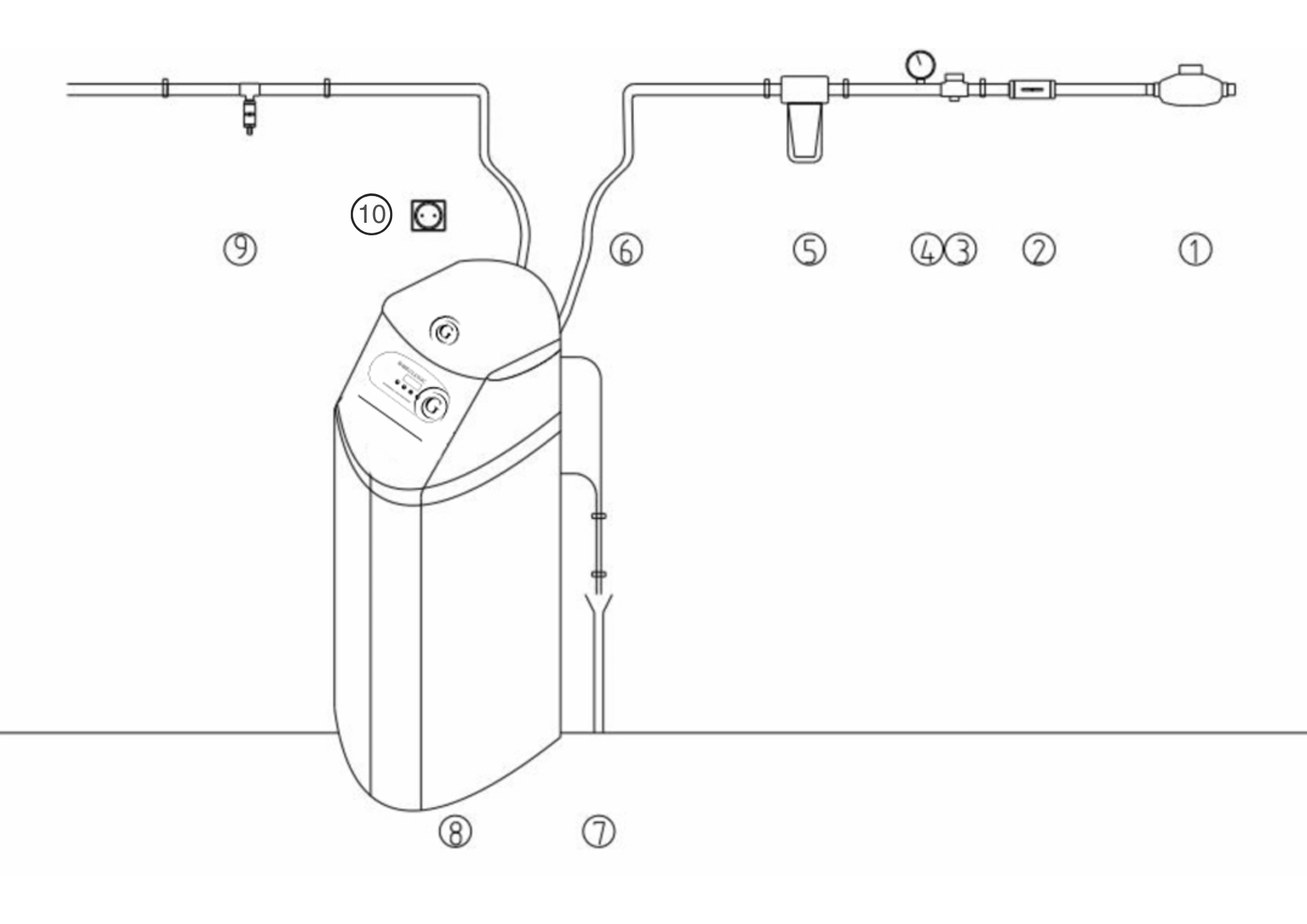Voor een optimale werking wordt een waterfilter vóór het toestel geïnstalleerd. Deze filter verwijdert aanwezige deeltjes uit het water en beschermt zo de interne componenten van de installatie. Het systeem is ontworpen voor een betrouwbare werking binnen een waterdruk tussen 2,2 en 4,0 bar, met een ideale werkdruk van 3,0 bar.